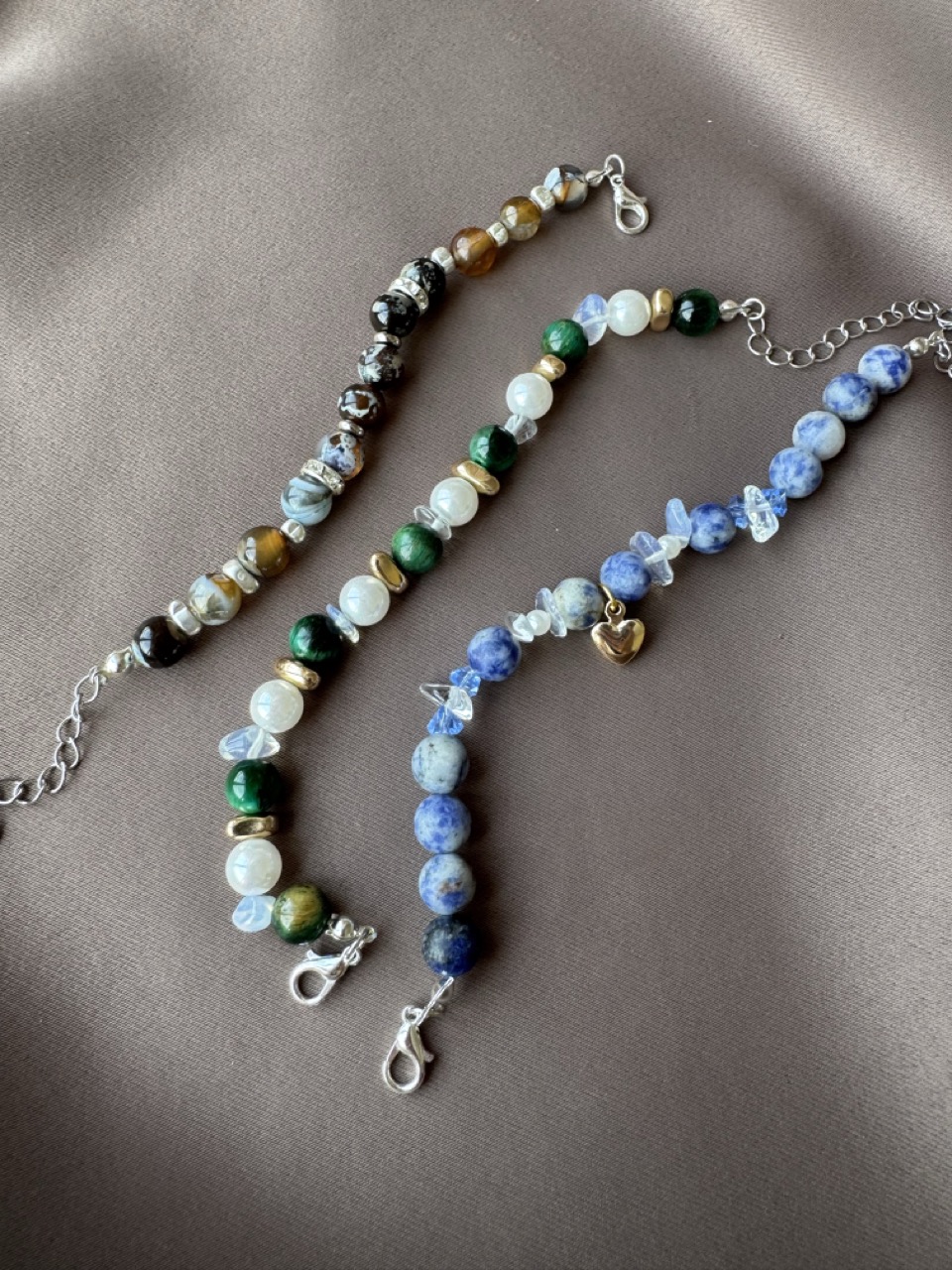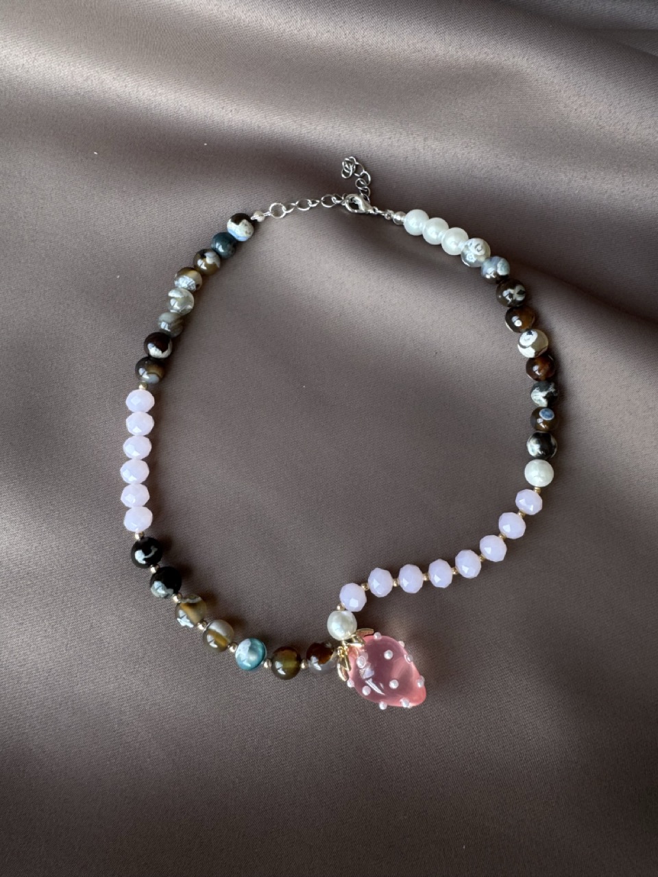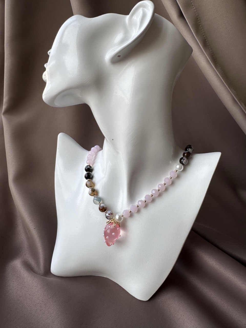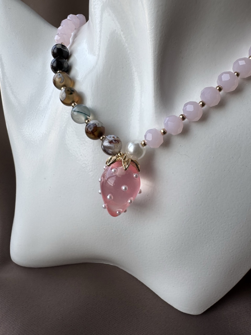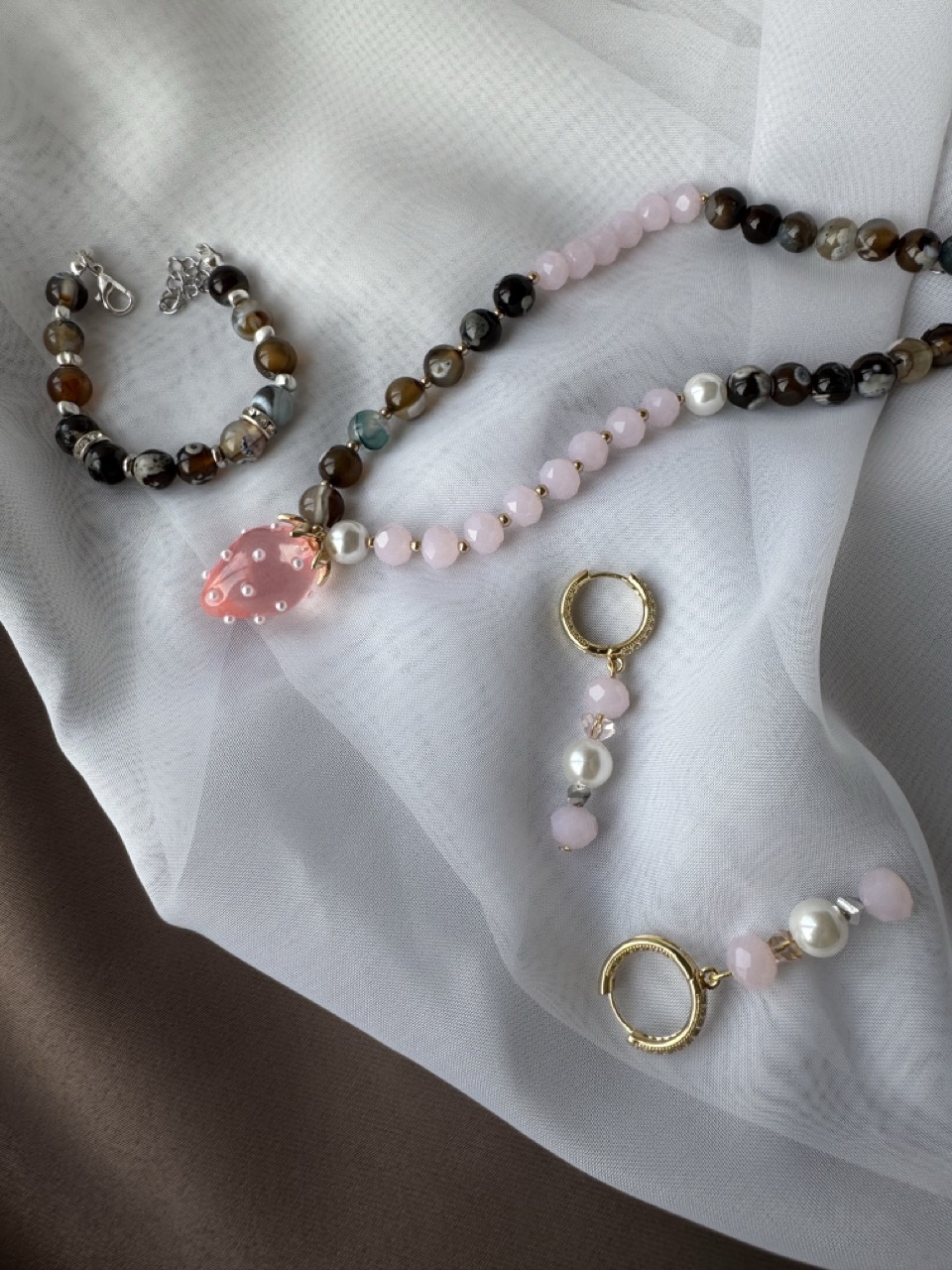 В наборе бусы космос из агата и алмазного стекла, браслет из агата, света 8 см, конфеты из белого шоколада с миндалем, клубникой и кокосом ручной работы.