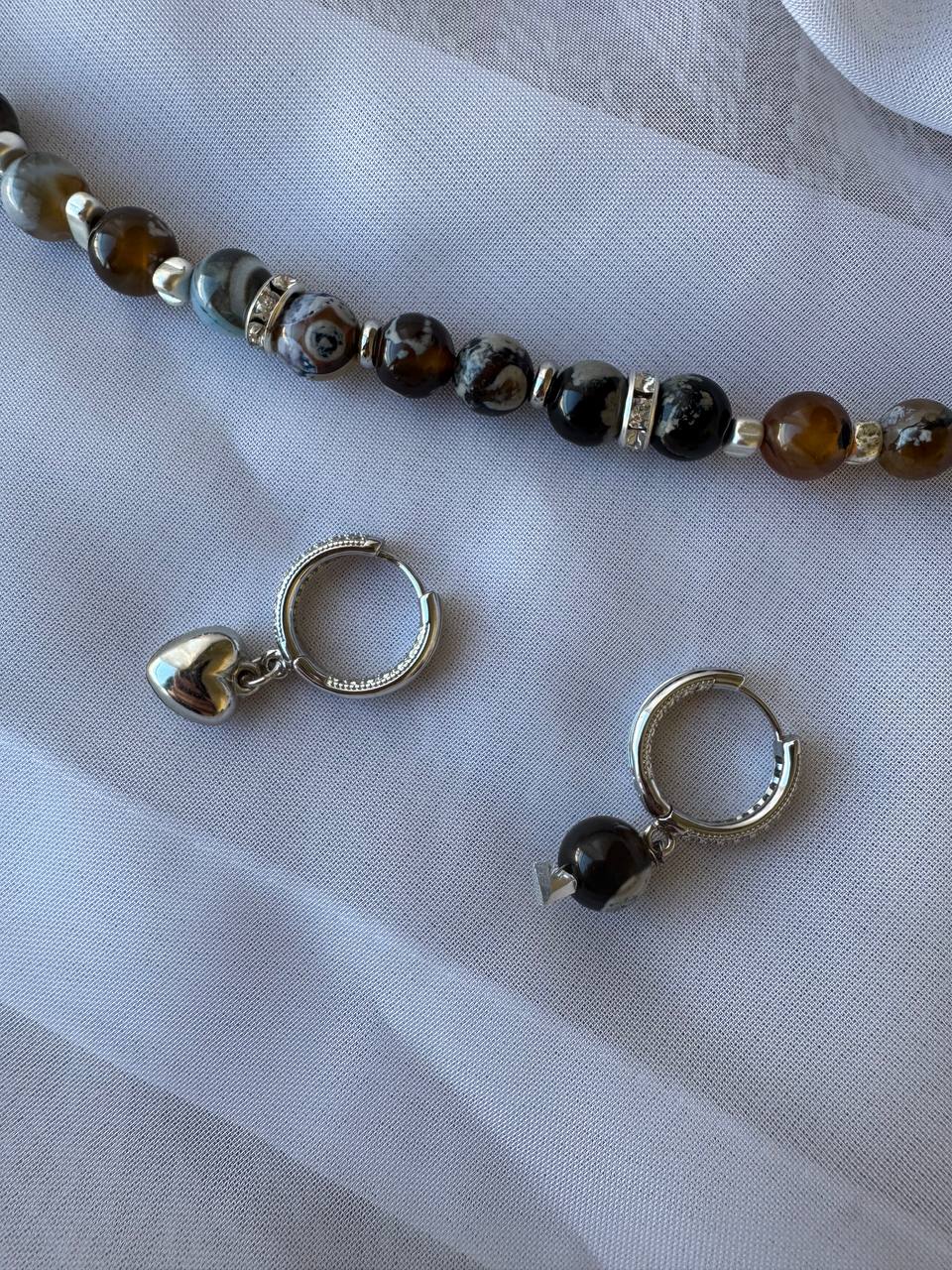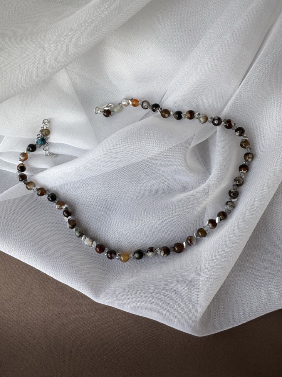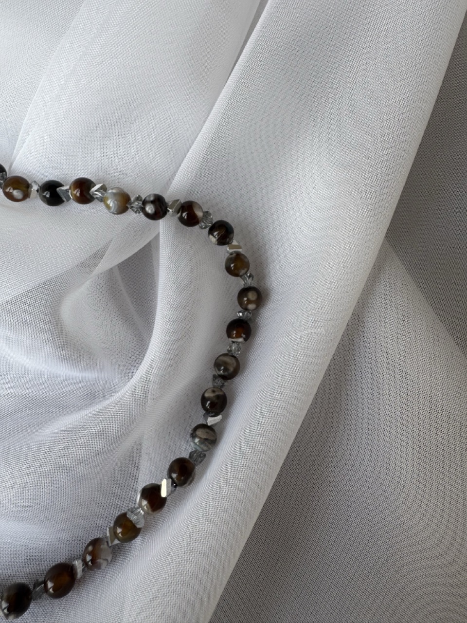 Бусы из натурального агата и алмазного стекла в подарочной коробке. Общая длина - 48 см. Цепочка регулирует размер украшения на 5 см. Браслет к колье можно заказать дополнительно