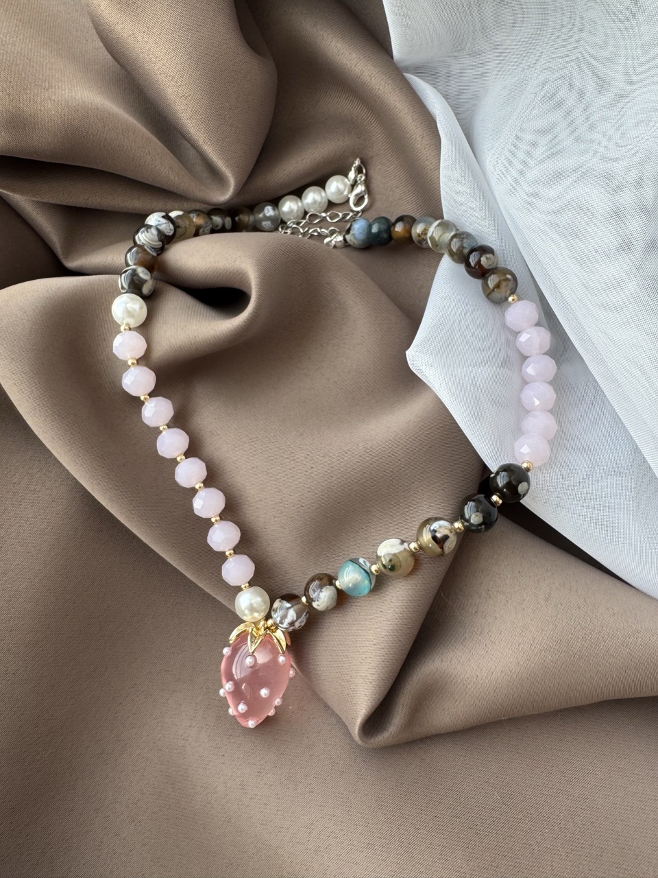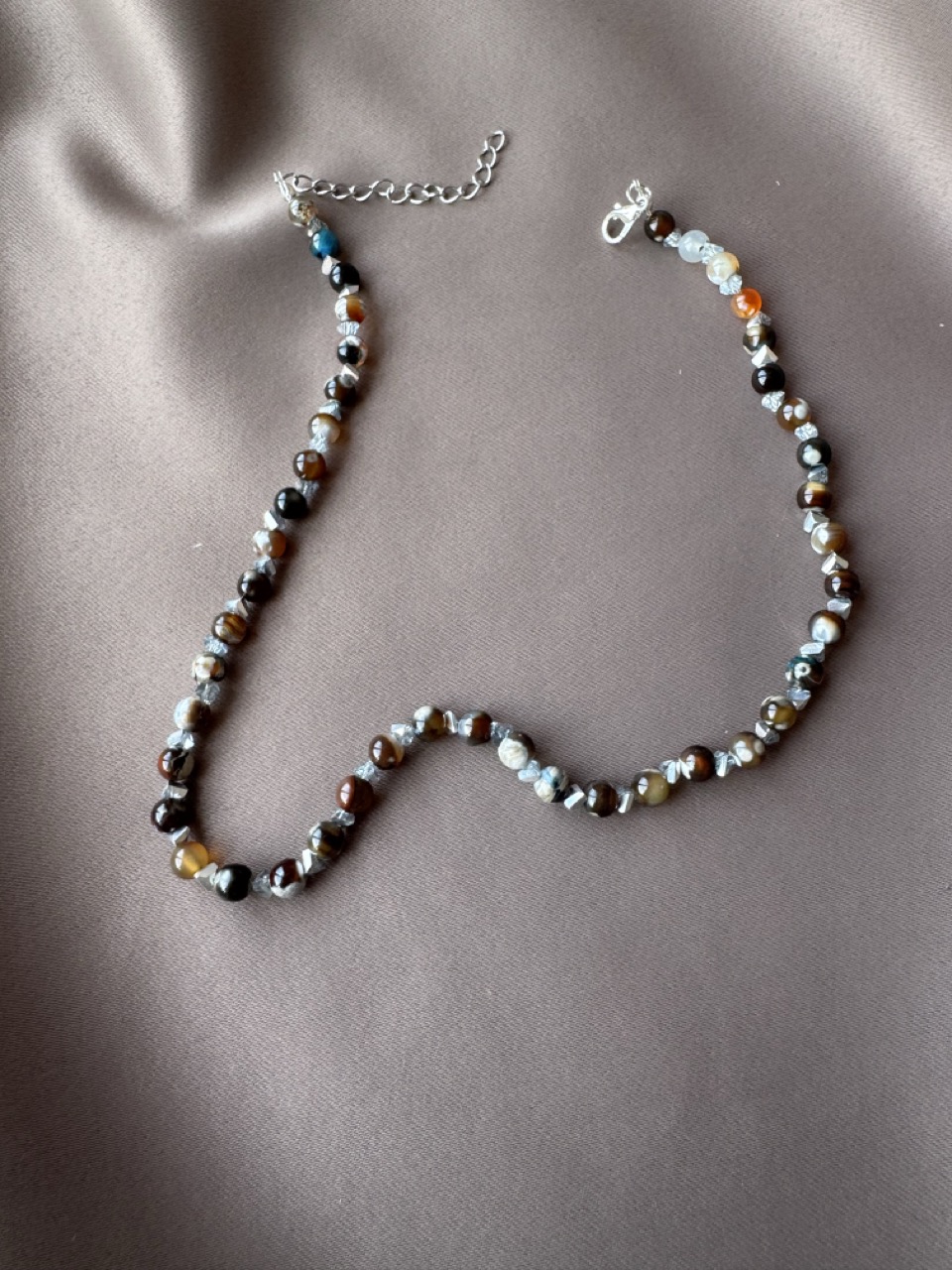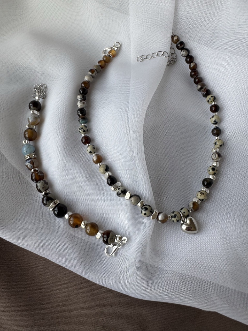 Бусы из натурального агата и алмазного стекла в подарочной коробке. Общая длина - 48 см. Цепочка регулирует размер украшения на 5 см. Браслет к колье можно заказать дополнительно