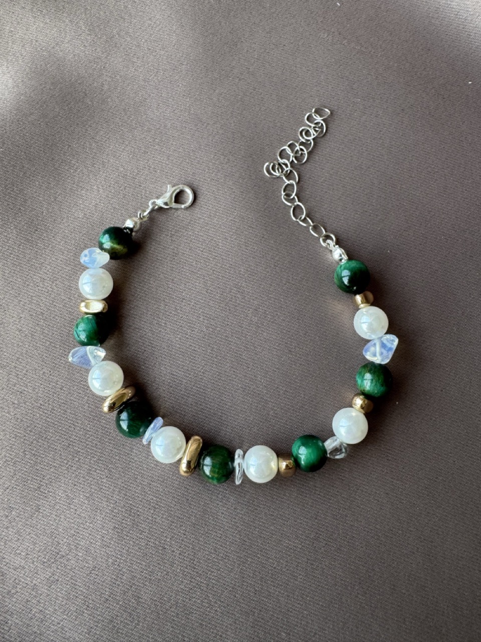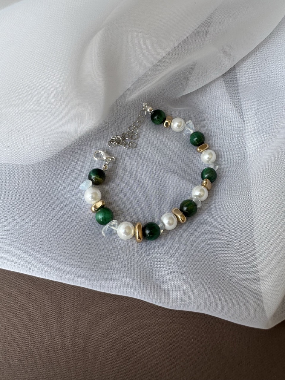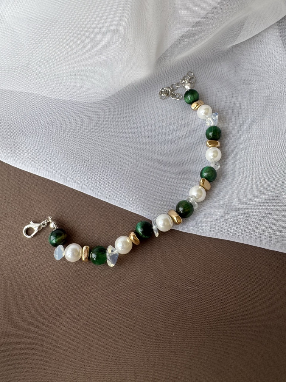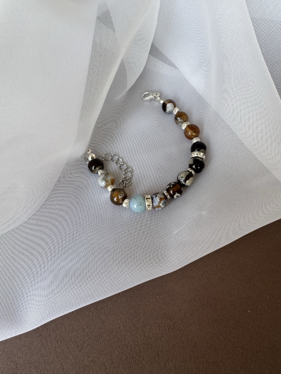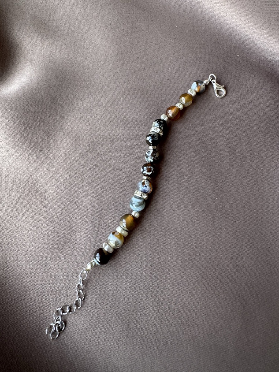 Браслет из натурального агата и алмазного стекла. Изделие ручной работы. Браслет на резинке. Длина - 15-17 см. В нашем магазине можно заказать бусы, которые подойдут к браслету.