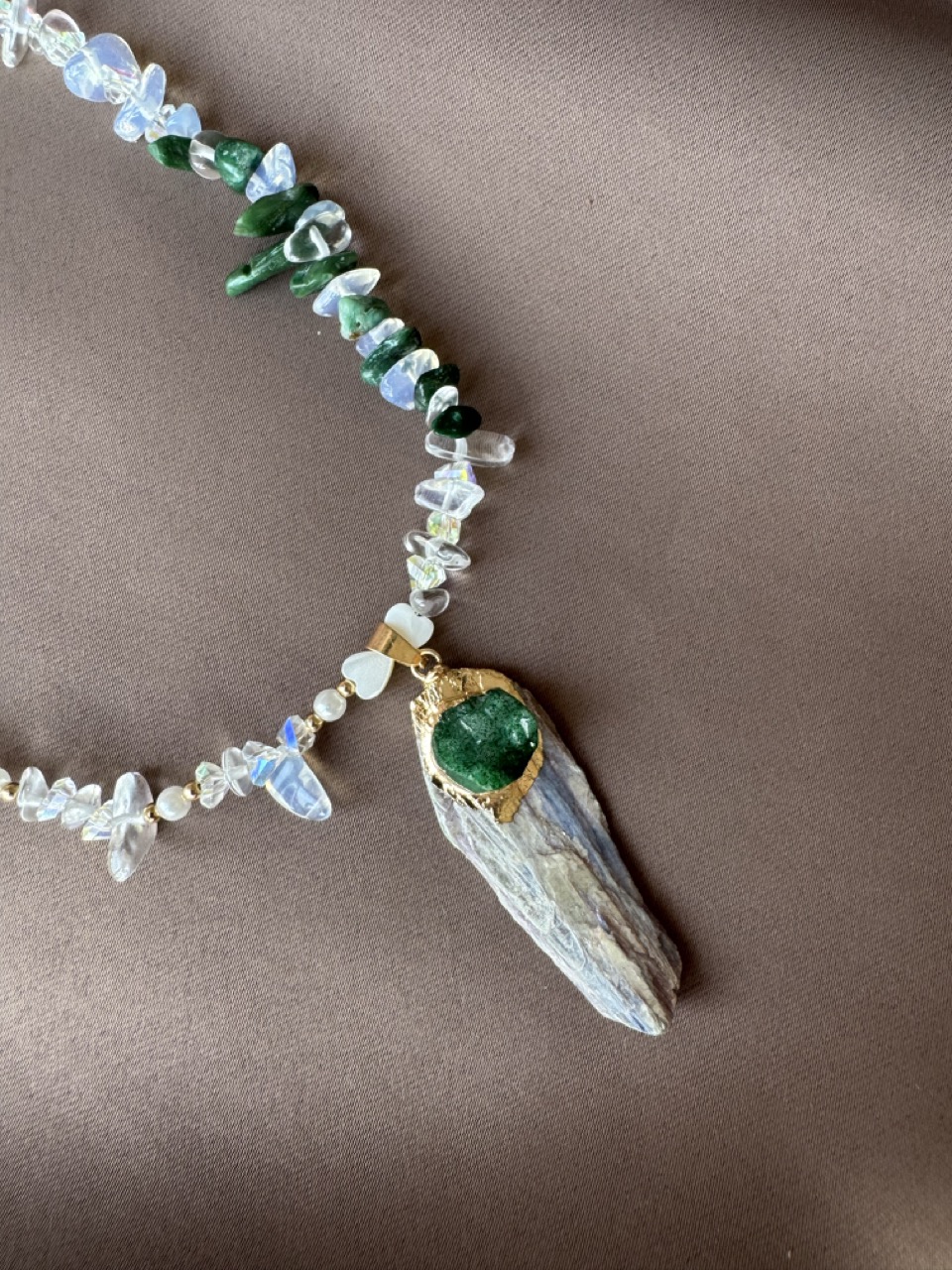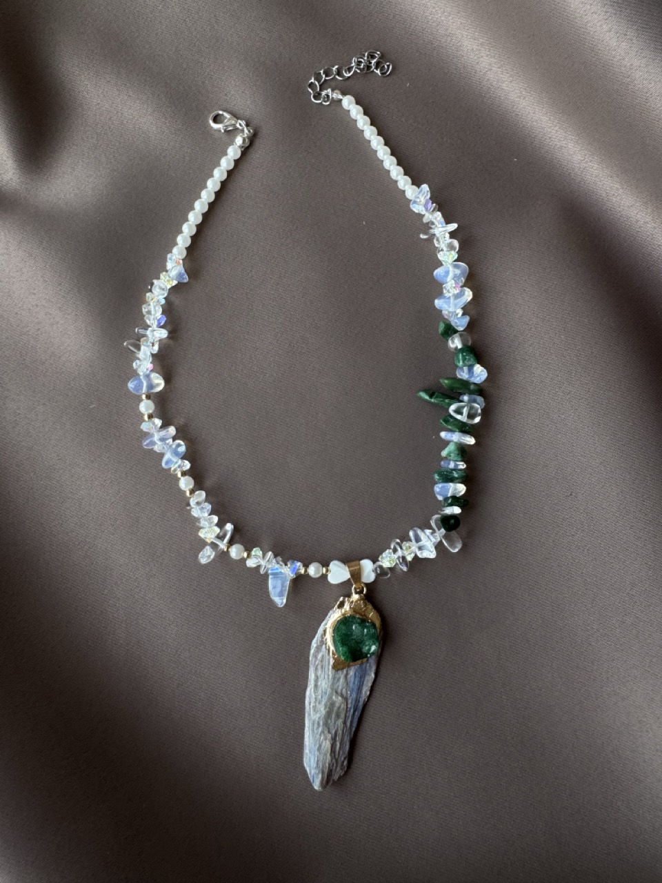 Волшебное колье из алмазного стекла. Ключик сделан из латуни и инкрустирован фианитами. Длину можно регулировать. А в нашем магазине вы найдете браслет к колье. Дарим серьги в подарок.